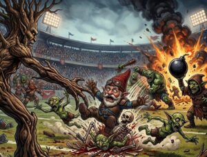 Le coup d’envoi à peine donné, la rencontre bascule immédiatement dans la violence la plus totale. Trois gnomes, visiblement peu sensibles à l’éthique sportive, s’acharnent à grands coups de pied sur un pauvre joueur khornadien déjà au sol…Résultat : Décès de Viggo Pitre Un début de carrière… extrêmement court pour cette recrue portant le numéro […]