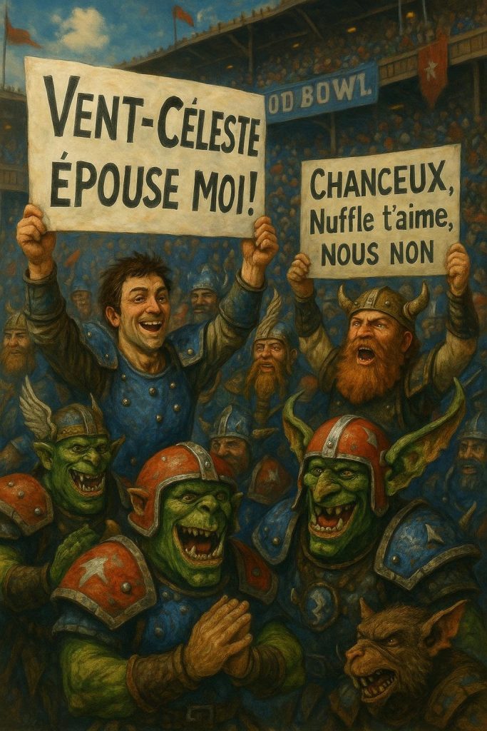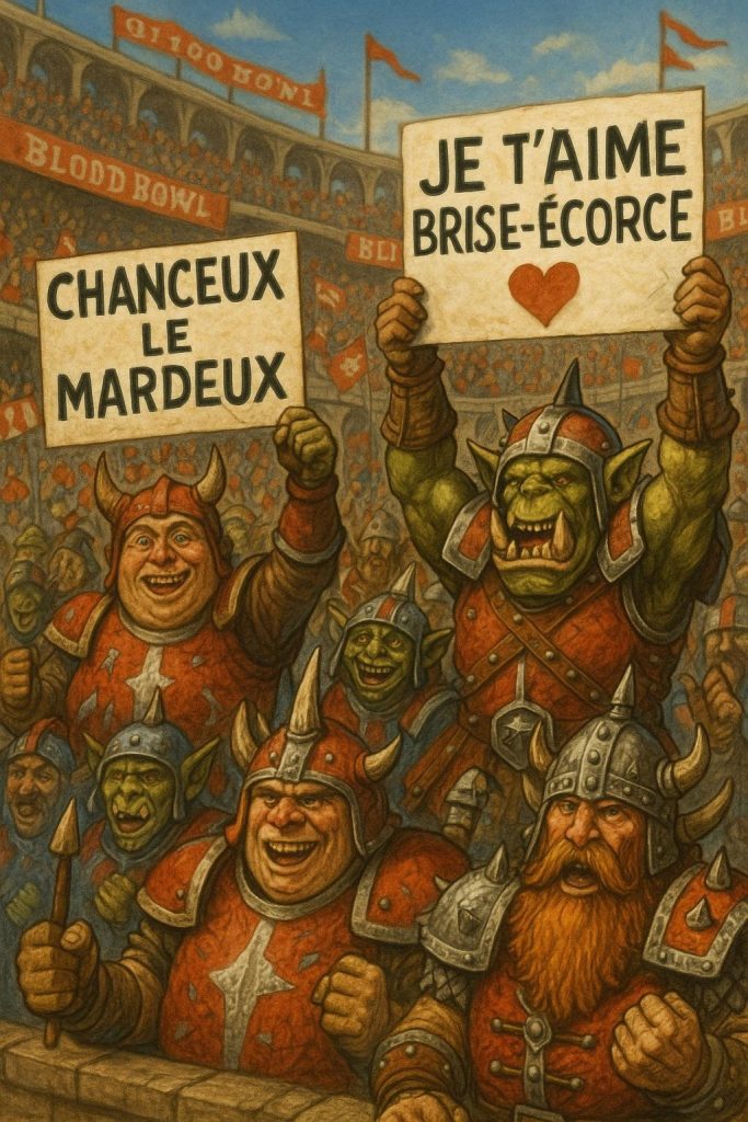 - Gerbil Volubille: Salut les fans! Bon enfin, l’Équinoxe va ressortir pour jouer! C’est ce soir que ça ce passe, alors que la formation Sylvaine va affronter l’équipe Skaven le Ratz. À quoi s’attendre? Je dirais de la vitesse, ces deux formations sont parmis les plus rapide. Il faut aussi prendre en compte le gros rat pas propre: Peyton Fétoce. Il faudra bien manœuvrer et faire attention au pire danger: la Malpierre! Je vous dis ce truc c’est pas jojo, un truc vert qui glow dans le noir, moi personnellement je ne toucherais pas à ça! C’est dégeulasse et ça te fais pousser des trucs que tu n’as pas besoin. Personnellement des cornes j’en veux pas, est-ce que j’ai l’air d’un cervidé? Non! Une grande bouche? Non! Ma mère m’a toujours dis que je parlais déjà trop. Des tentacules? Heu Ark! Rien à foutre! Si j’ai un conseil à donner aux joueurs de l’Équinoxe, porter des gants!