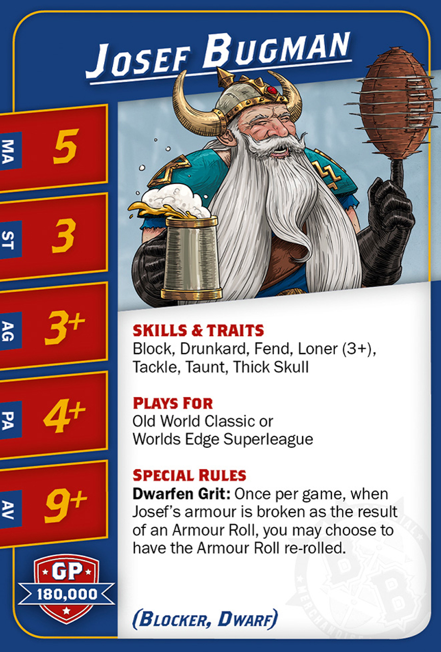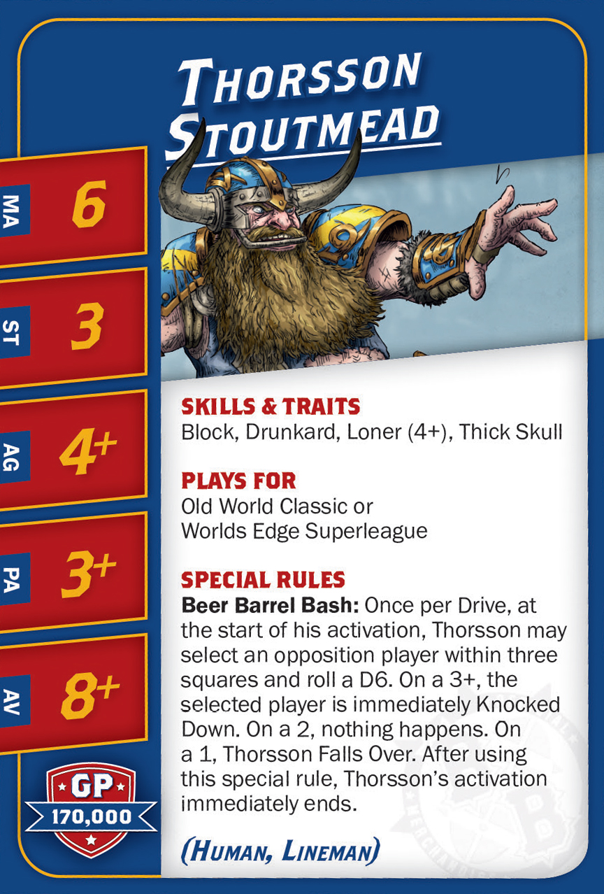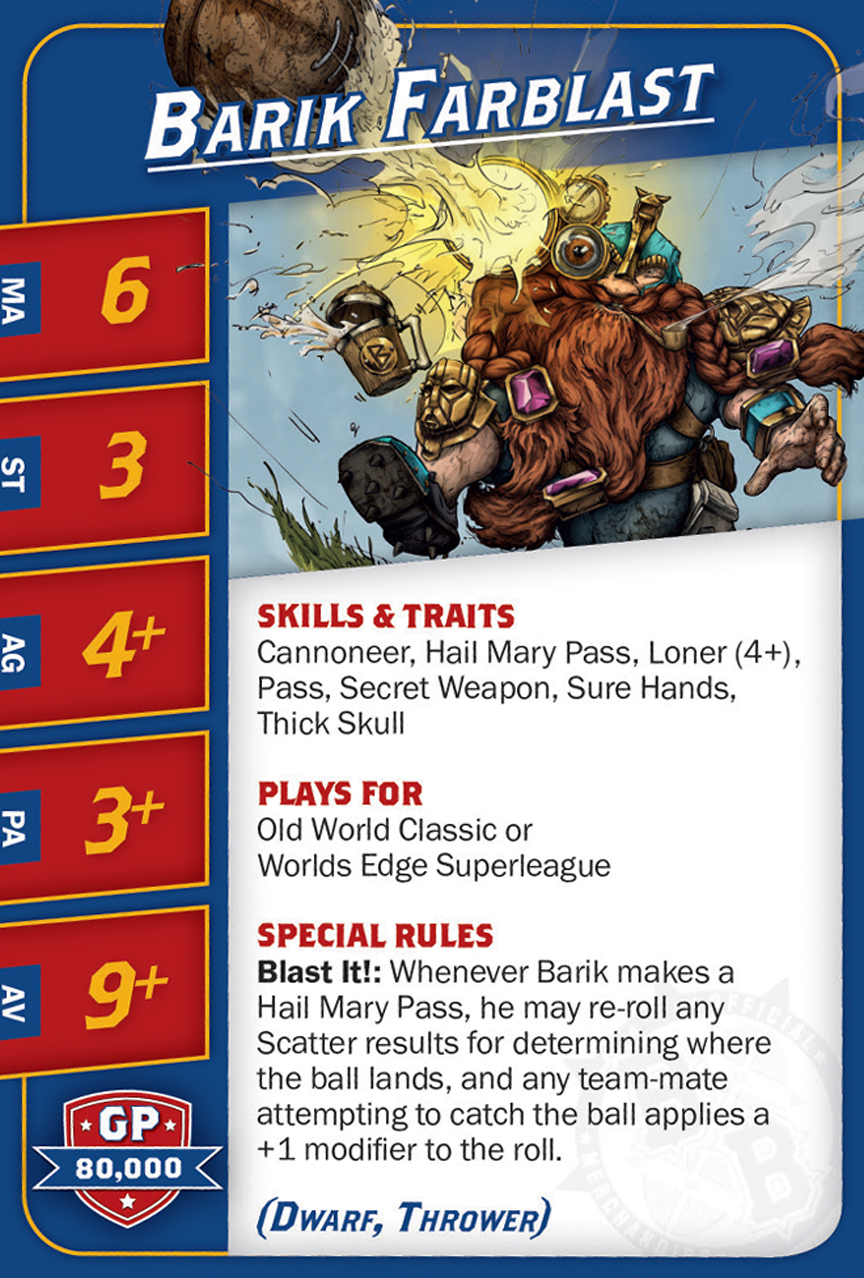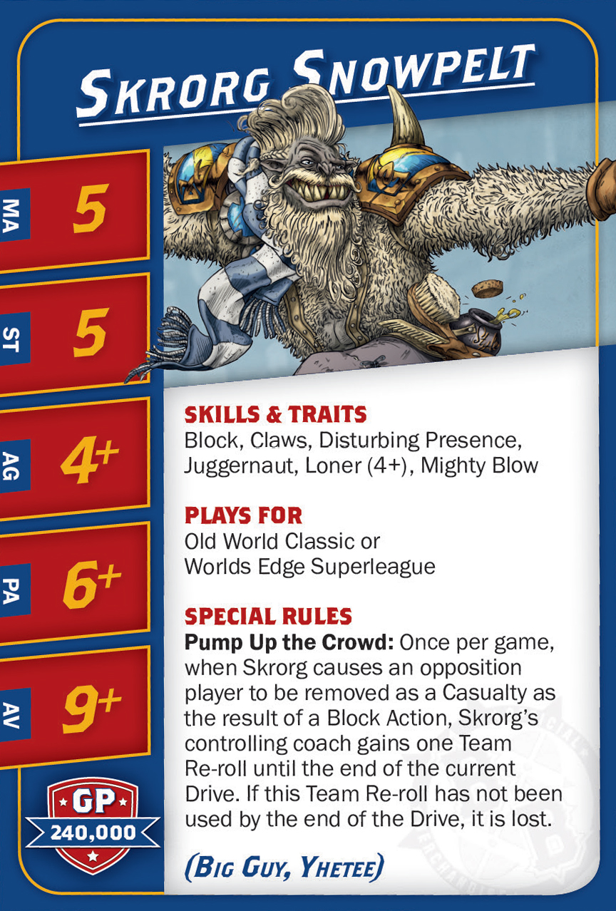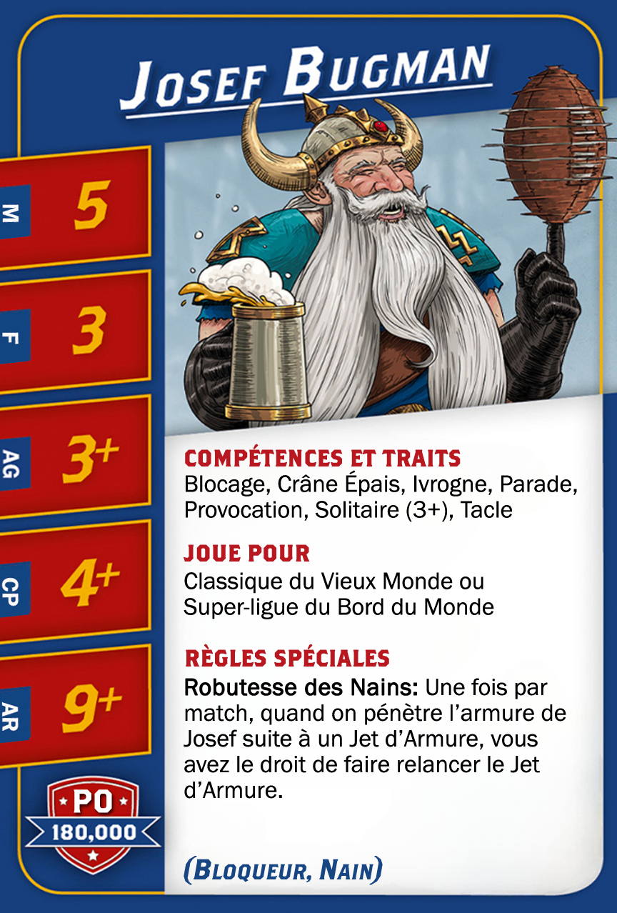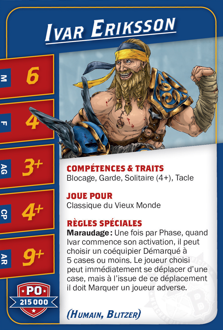 | 0-2 | Bretonnian Knight Catcher (Humain, Receveur) | 85,000 | 7 | 3 | 3+ | 4+ | 9+ | Intrépide, Nerfs d’Acier, Réception | AG | S | 8,9 |