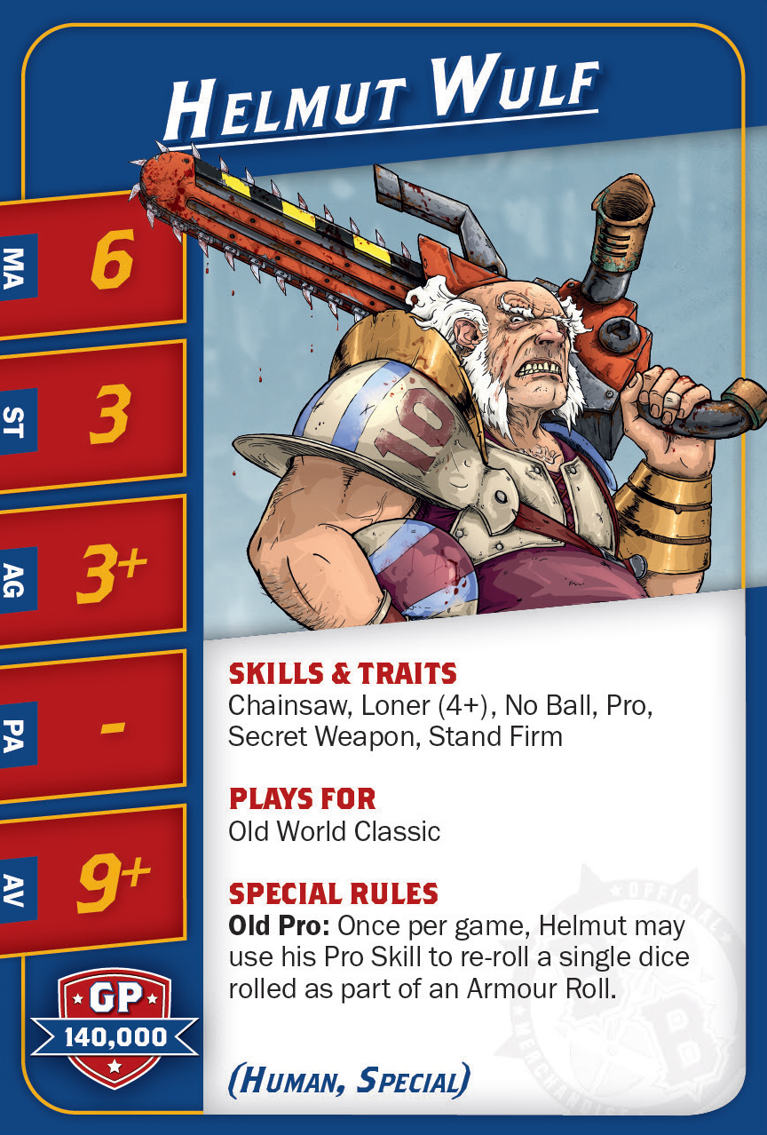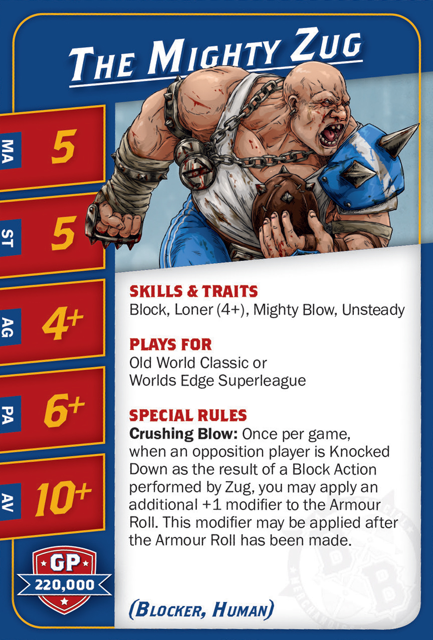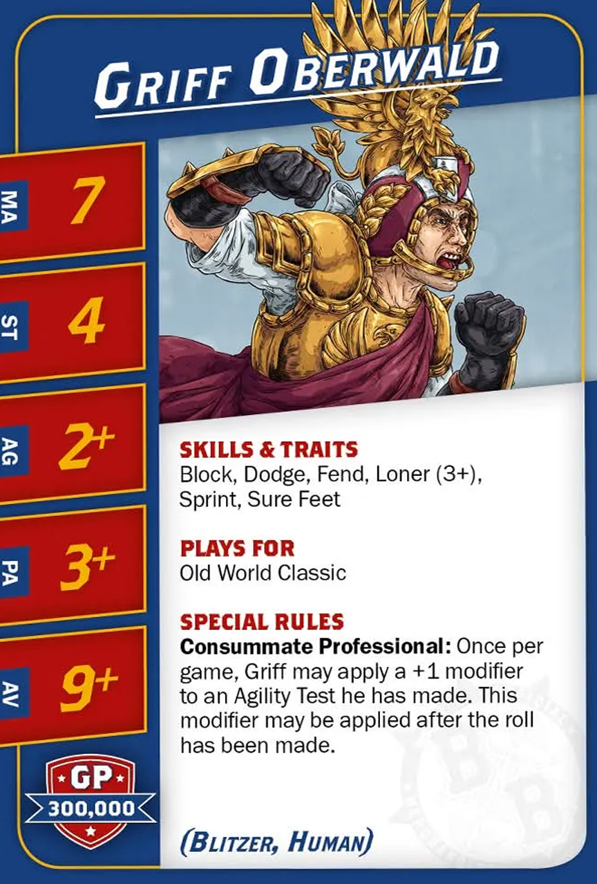 | 0-2 | Grail Knight (Blitzer, Humain) | 95,000 | 7 | 3 | 3+ | 4+ | 10+ | Appuis Sûrs, Blocage, Intrépide | GS | A | 10,11 |