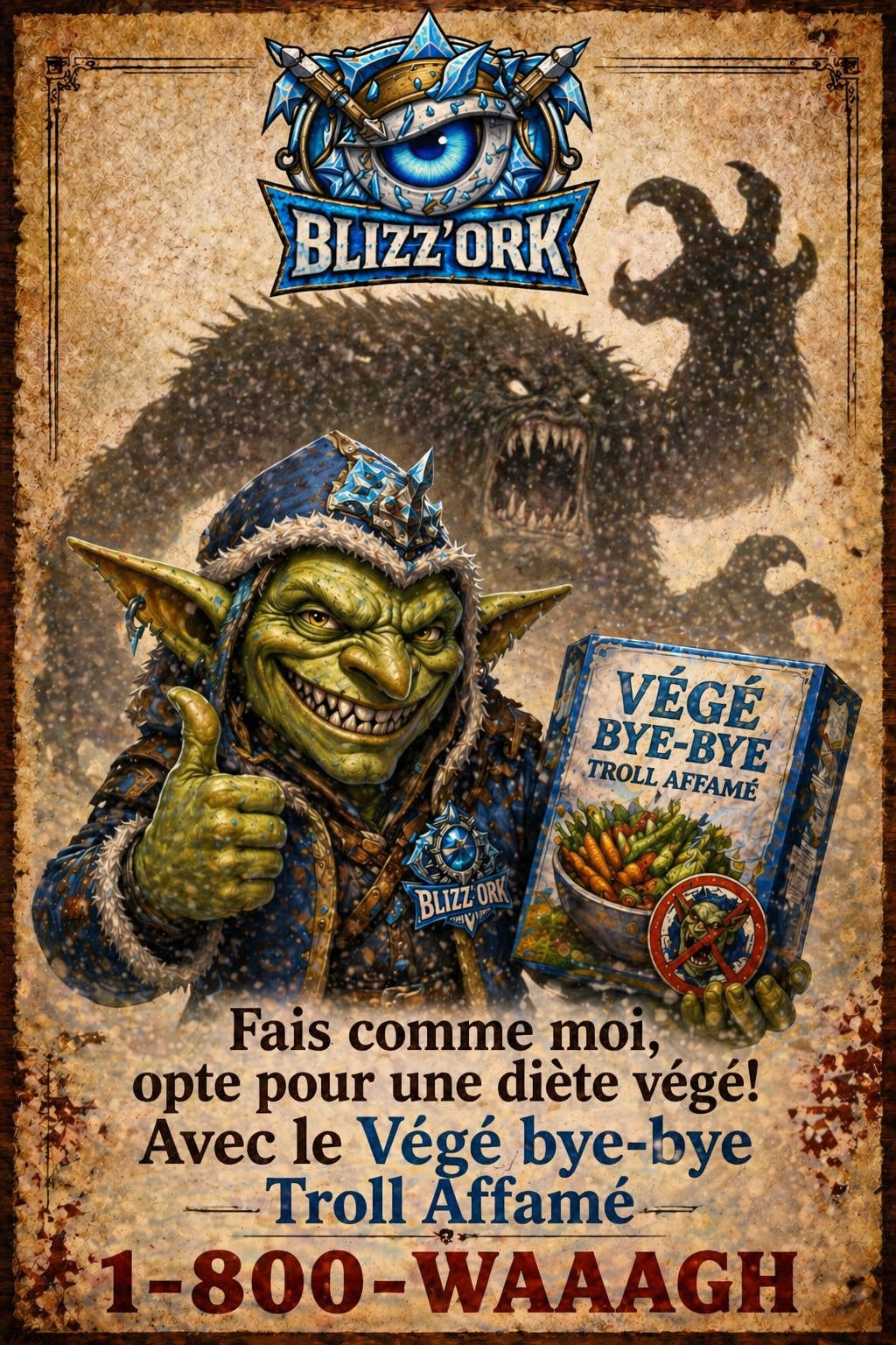 - Blab’Blizz: Ouais Mister Meat a failli se faire squik squik vendredi, Cécé Péniston a trouvé son Gobo alléchant, mais Mister Meat a réussi à s’sortir de là! Ouf! Fak c’est simple à partir de maintenant on va faire attention à s’quon mange! Ouais on mange végé! D’ailleurs Mister Meat devient officiellement porte-parleur de la marque: Végé Bye-Bye Troll Affamé. C’te bouffe là pas mêlant, ça toute: du bon, pis ça aide à courir plus vite! Attention cé seulement pour les ti-gars qui peuvent s’faire lancer. Nos gros bloqueurs eux vont rester à la viande! Même Krak’Noix veut pas toucher à ça le végé! Il a dit ça l’aut’fois: