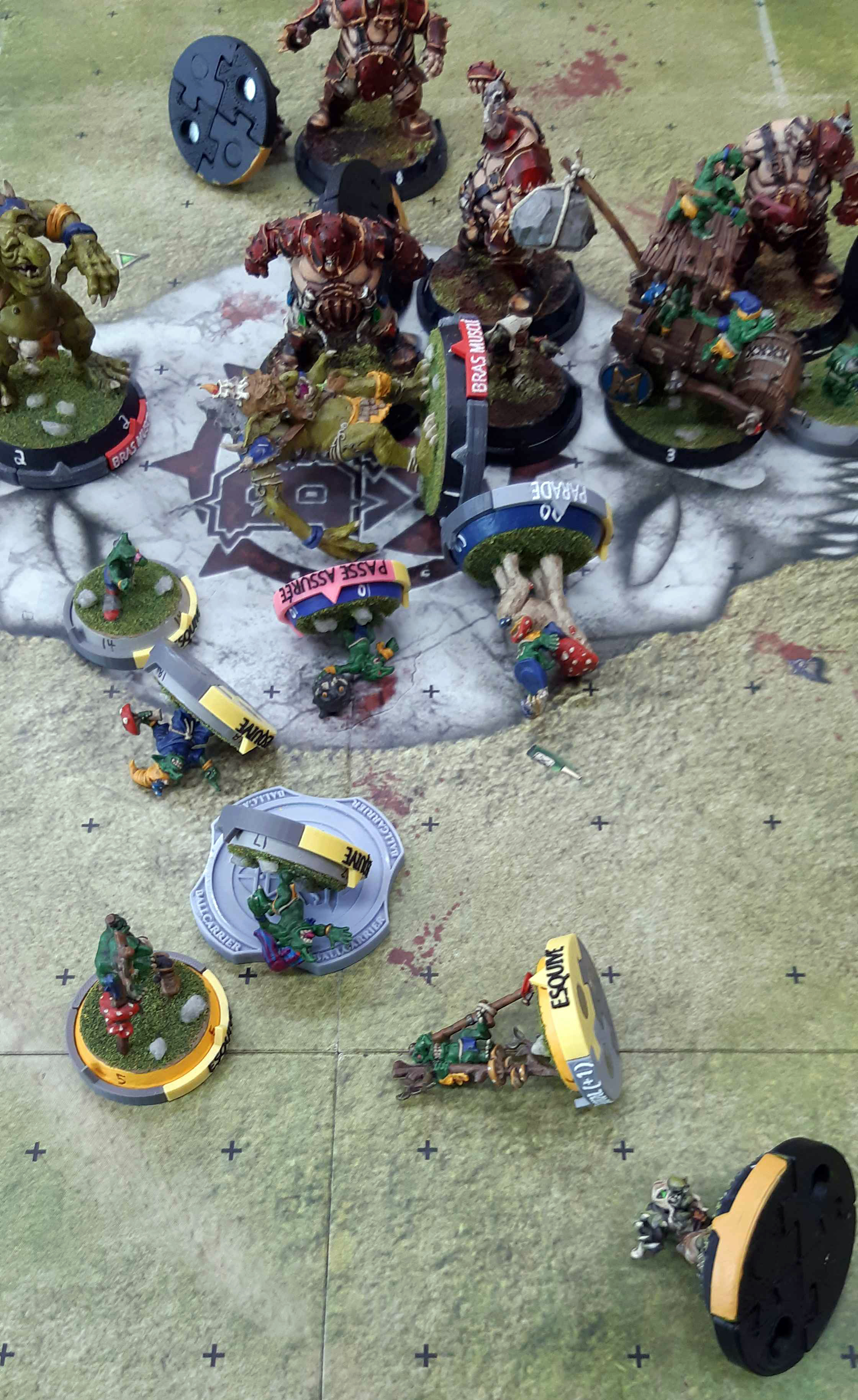 Papa Shango : Zogar était clairement fatigué et il a échappé un coéquipier quand il a tenté un lancer. Le gnoblar s’est assommé et il a laissé tomber le ballon. Un des rares snotlings qui était sur le terrain la récupérer et lancer dans le fond de notre zone.