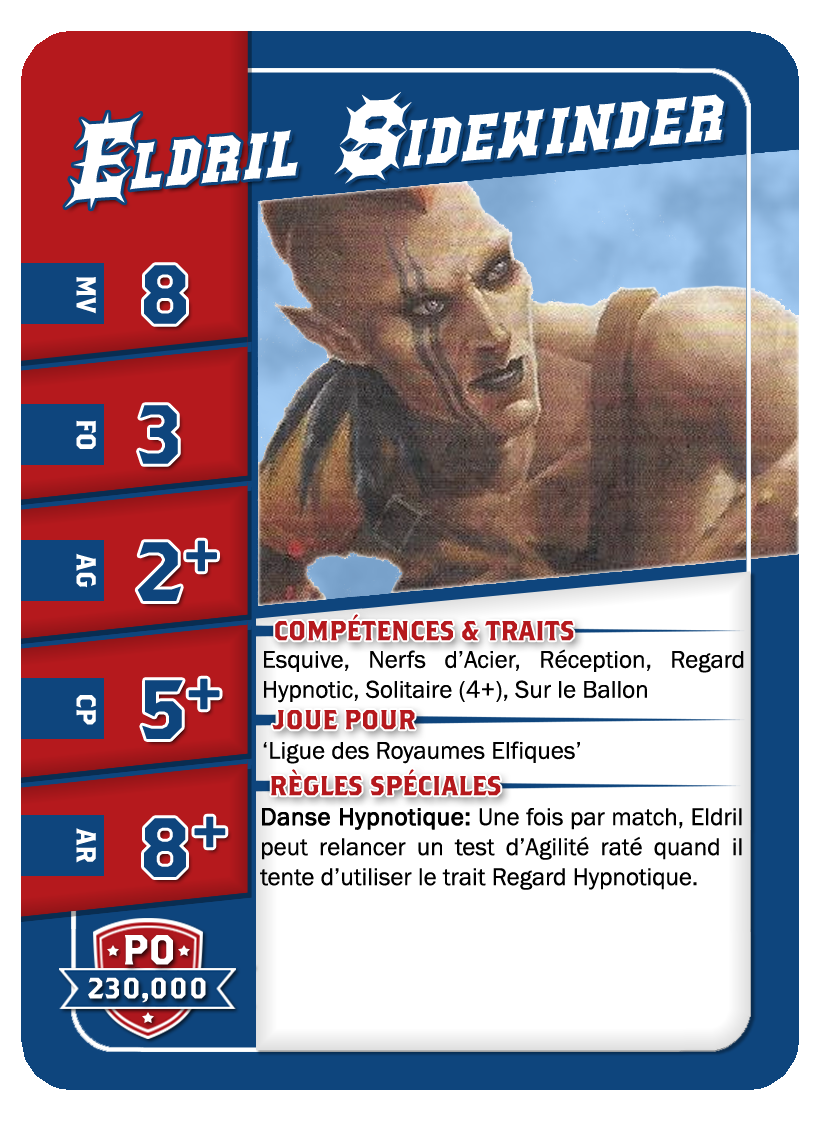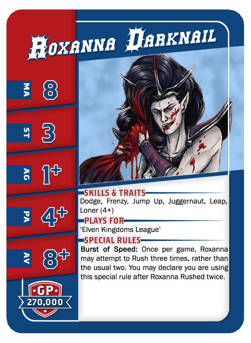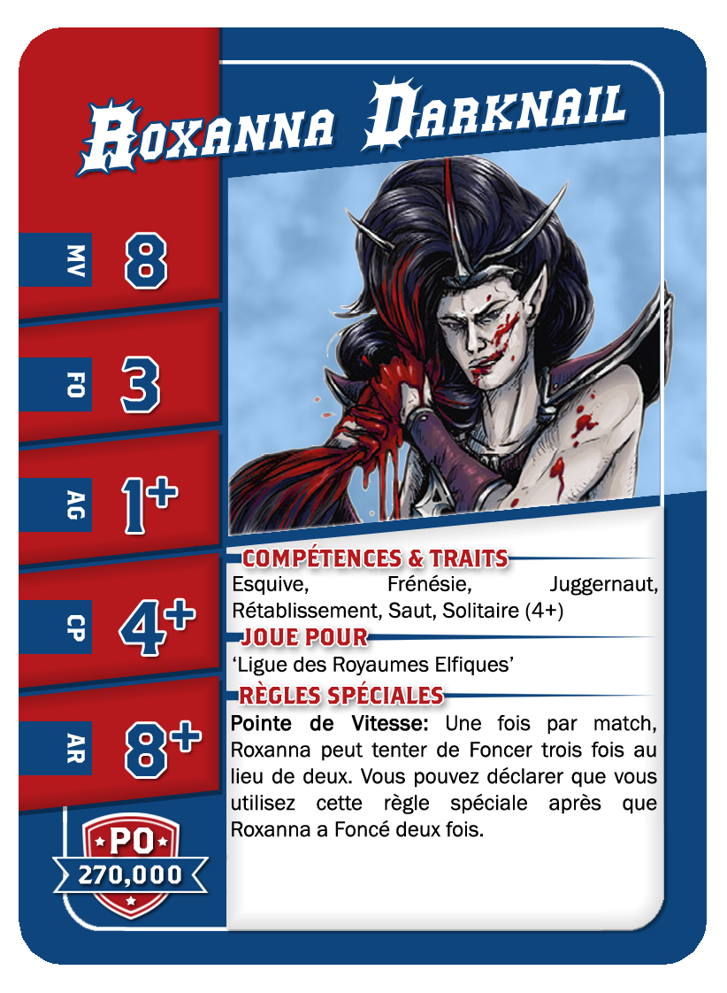 | 0-2 | Blitzers | 100,000 | 7 | 3 | 2+ | 4+ | 9+ | Blocage | AG | PS | 7,8,9 | 10,11 |