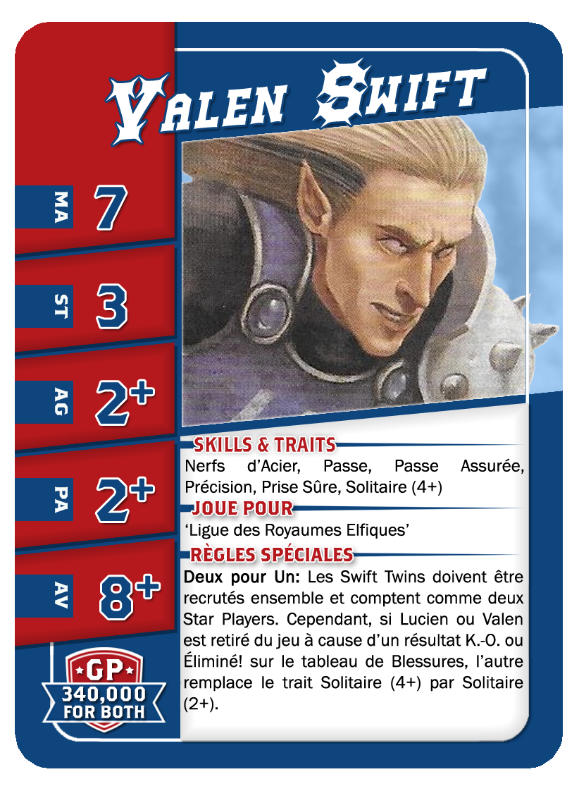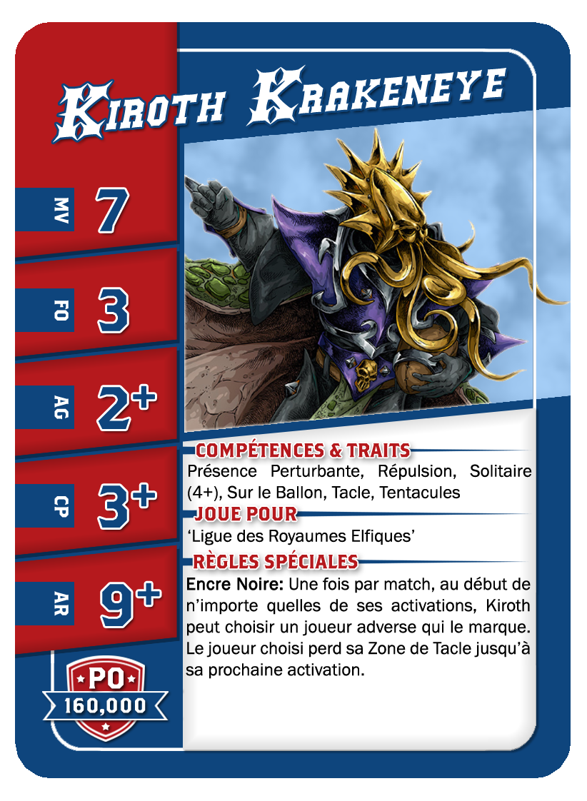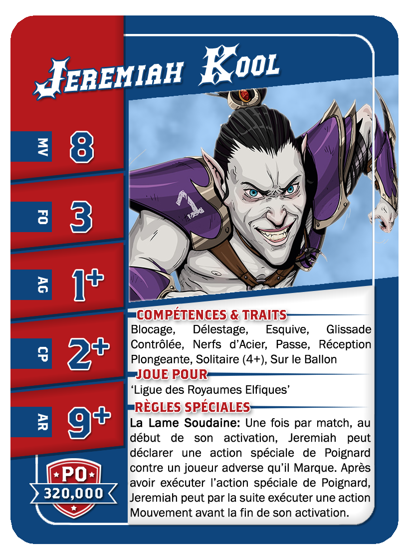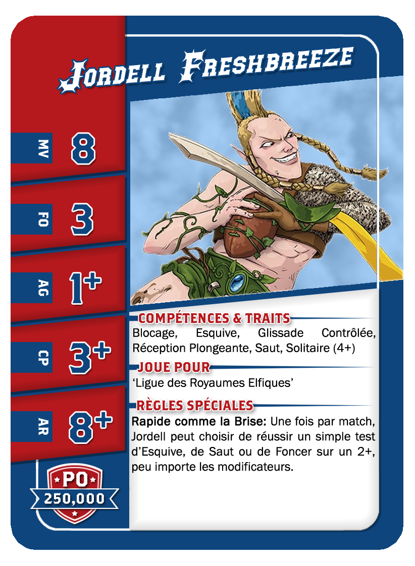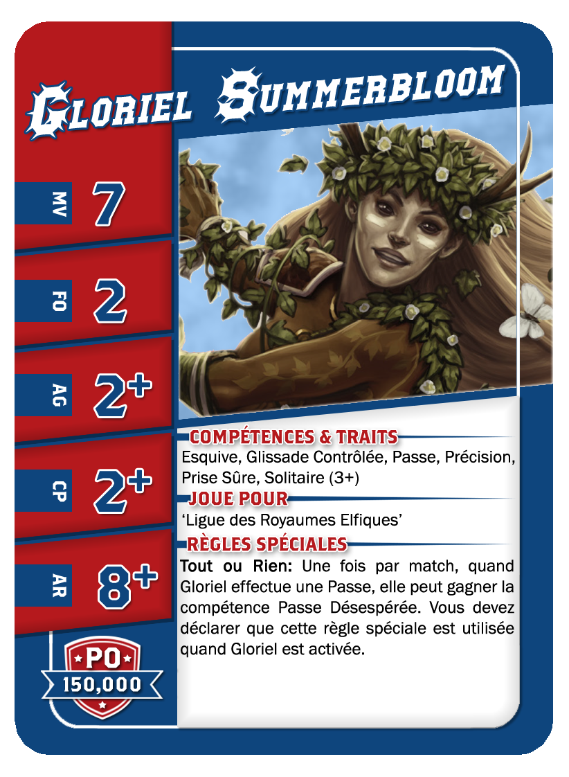 | 0-2 | Throwers | 100,000 | 6 | 3 | 2+ | 2+ | 9+ | Passe, Passe Assurée, Perce-Nuages | AGP | S | 10,11 | 4,5,6 |
