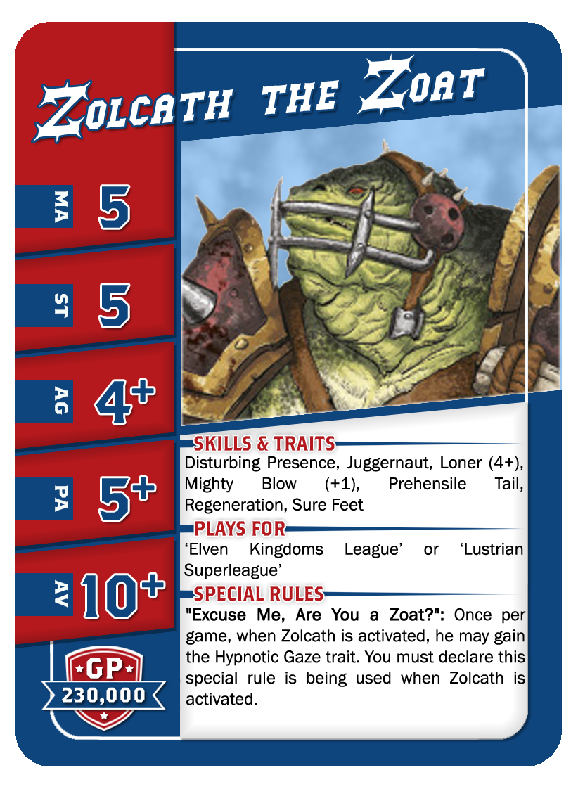 | 0-16 | Linemen | 70,000 | 6 | 3 | 2+ | 4+ | 9+ | AG | PS | 1,2,3 | ||