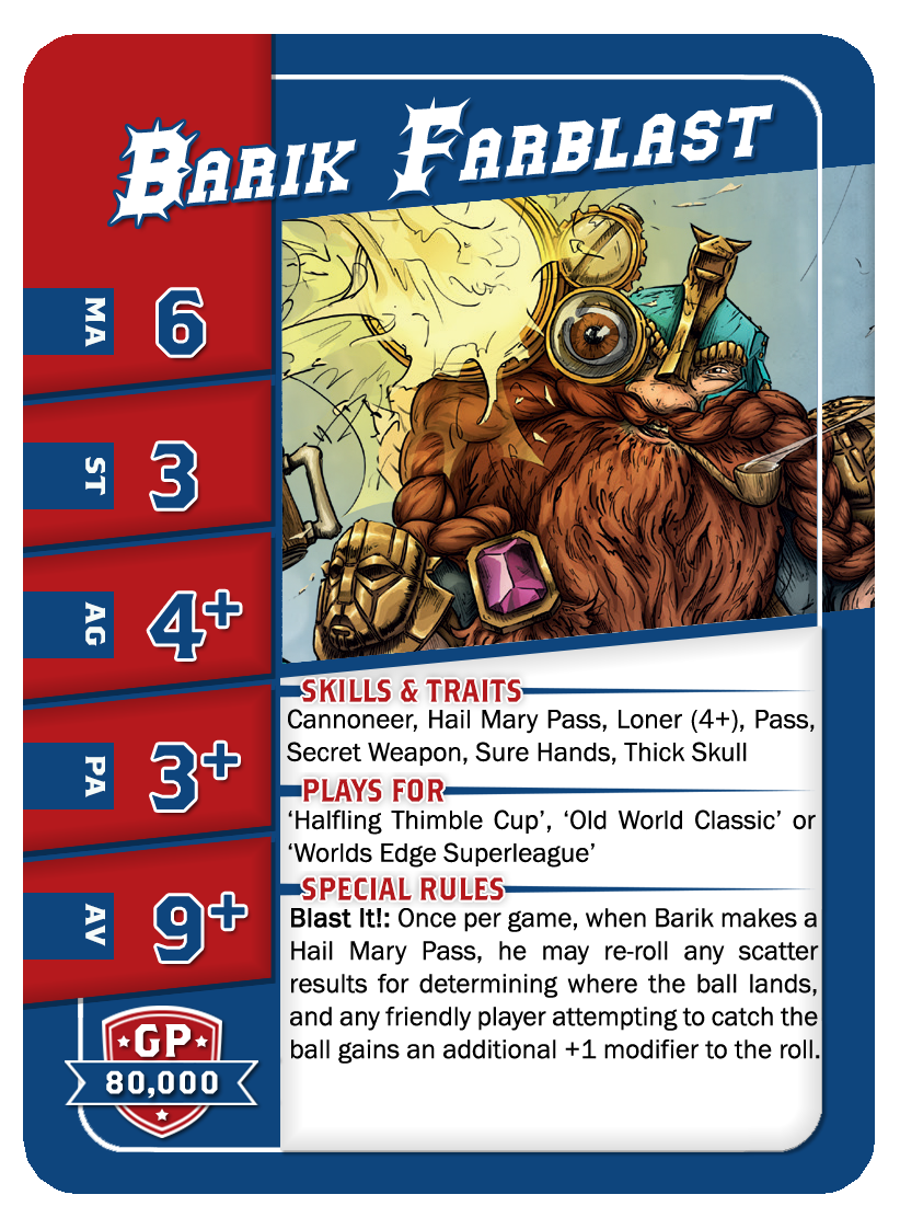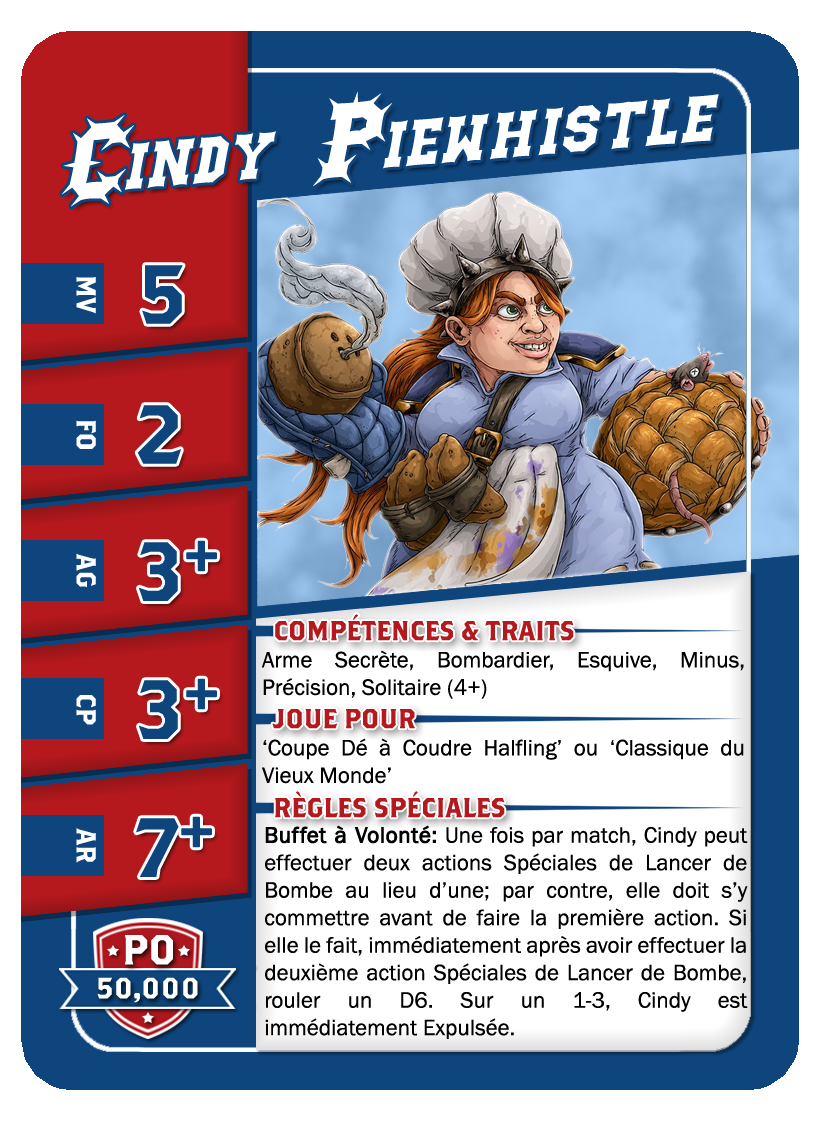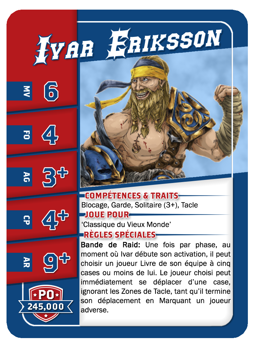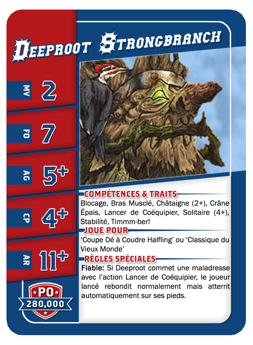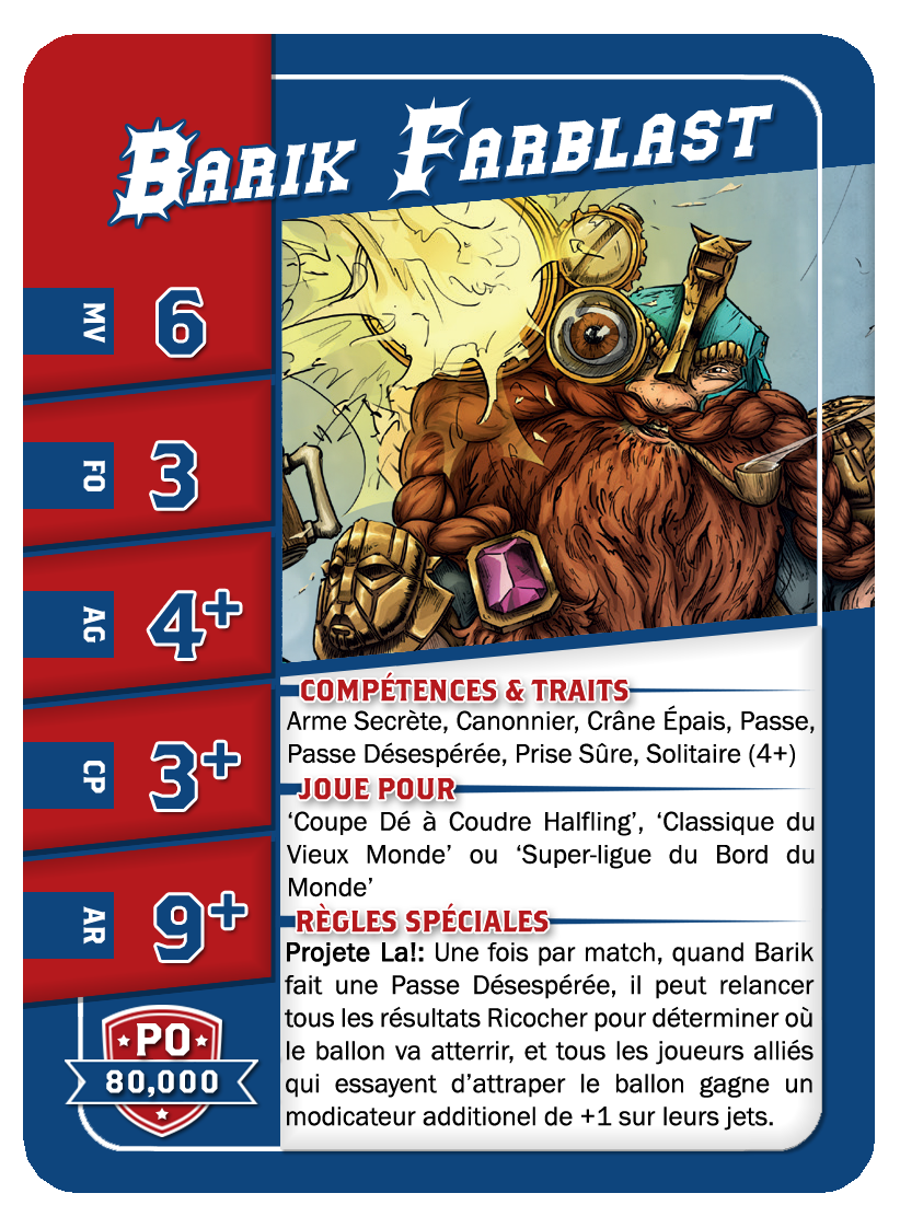 | 0-2 | Throwers | 80,000 | 6 | 3 | 3+ | 2+ | 9+ | Passe, Prise Sûre | GP | AS | 9,10 | 3,4 |