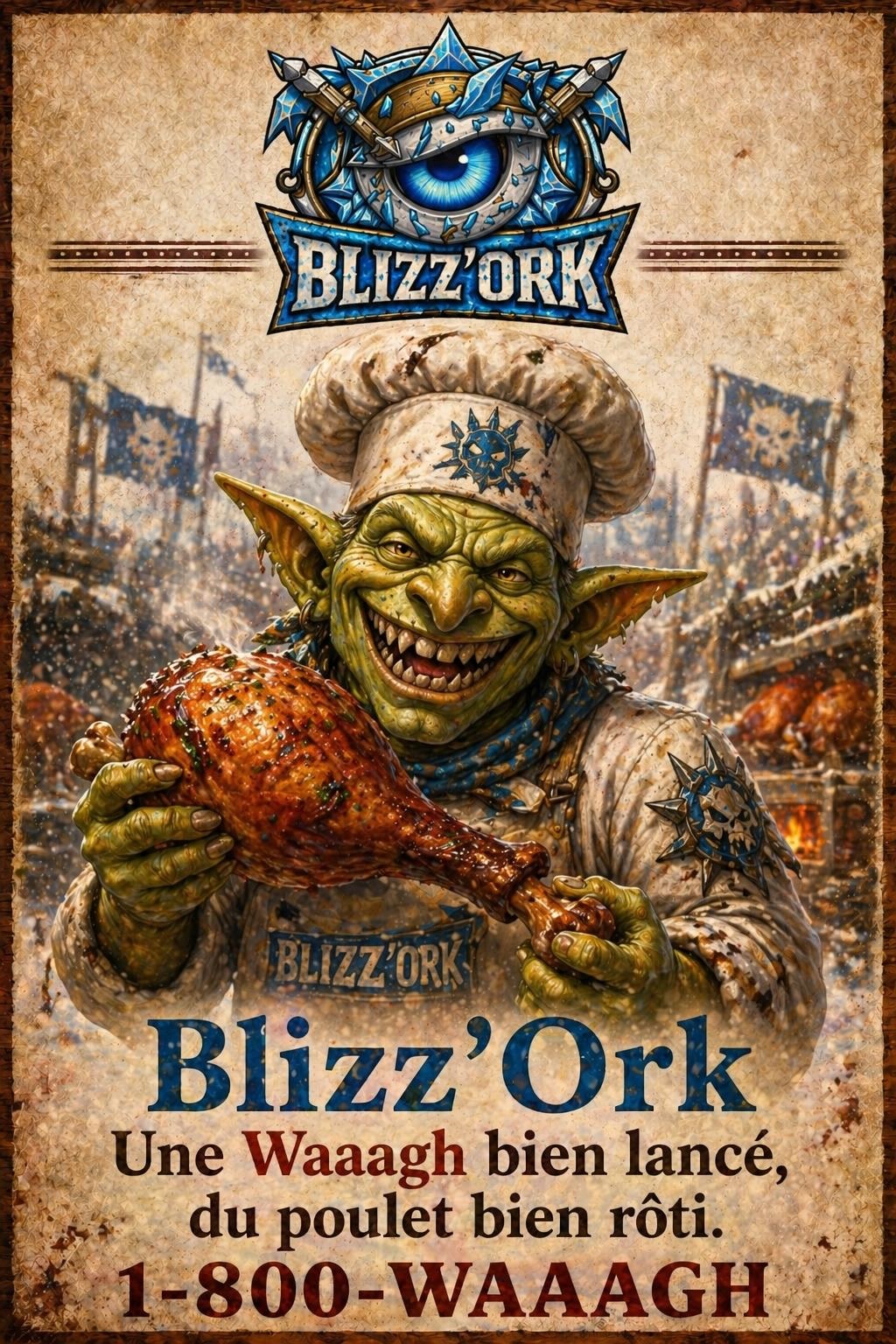 • Blab’blizz: S’lut les eunes! C’est tout chaud et bien rôtis, le Blizz’Ork lance sa campagne de Pub pour le Chicken Bowl! Pour faire plaisir aux ti-Orks, aux mini-Gobo pis aux autres marmots, on lance notre campagne. Sans plus attendre voici l’affiche: