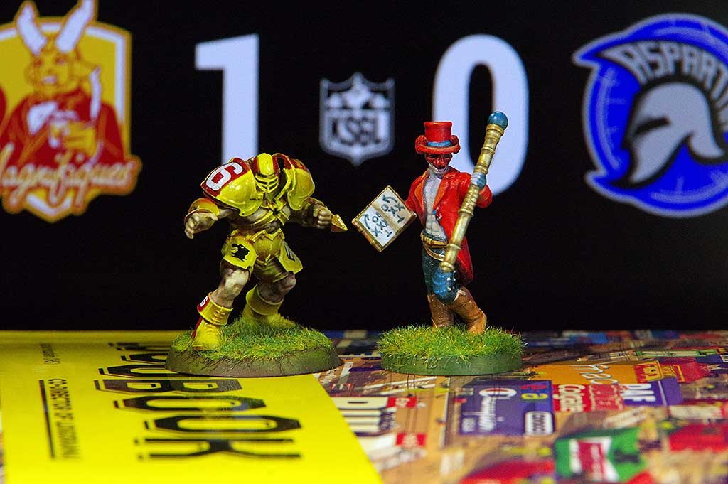 La défensive des Magnifiques n’y pouvaient vraiment rien, ce qui convainquit le receveur Stan Siette qu’il était une bonne idée de glandouiller un peu en possession du ballon. Le capitaine Makita avait une tout autre opinion. Un blitz réussi et une longue échauffourée plus tard voyait la mi-temps s’achever sur un choux blanc.