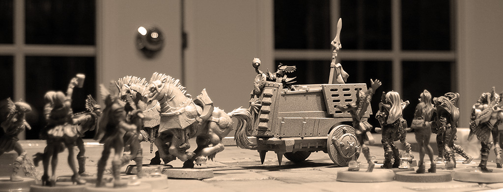 Le prince Moranion, embauché en prime de match par les Rapides, a fait une entrée remarquée en conduisant le char officiel de l’équipe Elfe-Hauts. Un mélange de technologie orque, chaotique, elfe et empire, ce char développant 2.5 chevaux-croquettes a remporté le dernier rallye Pourris-Drakkar.