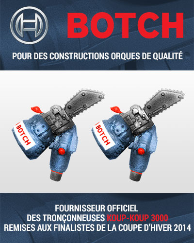 Notre généreux commanditaire BOTCH offre ses réputées tronçonneuses KOUP-KOUP 3000 aux deux équipes finalistes de la Coupe Blanche. Lors de la séquence d’avant-match, celles-ci reçoivent gratuitement une Prime de Match formée d’un joueur de base gagnant les compétences «Tronçonneuse» et «Solitaire». La valeur de la Prime de Match est le salaire de base du joueur + 30 000$. Il est permis à ce joueur d’avoir un nom (sic), de gagner des points d’expérience et d’acquérir de nouvelles compétences. La Prime de Match reste active jusqu’au décès du joueur ou jusqu’à sa mise à la retraite.