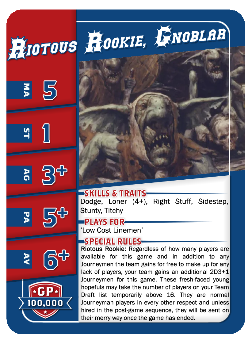 0-1Ogre Runt Punter145,000554+4+10+Botter de Coéquipier, Cerveau Lent, Châtaigne (+1), Crâne ÉpaisPSAG9,10,11