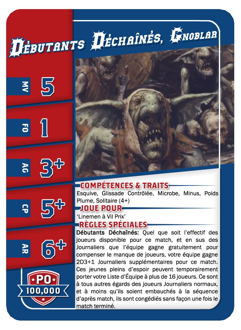 0-16Gnoblar Linemen15,000513+5+6+Esquive, Glissade Contrôlée, Microbe, Minus, Poids PlumeAG1,2,3,4