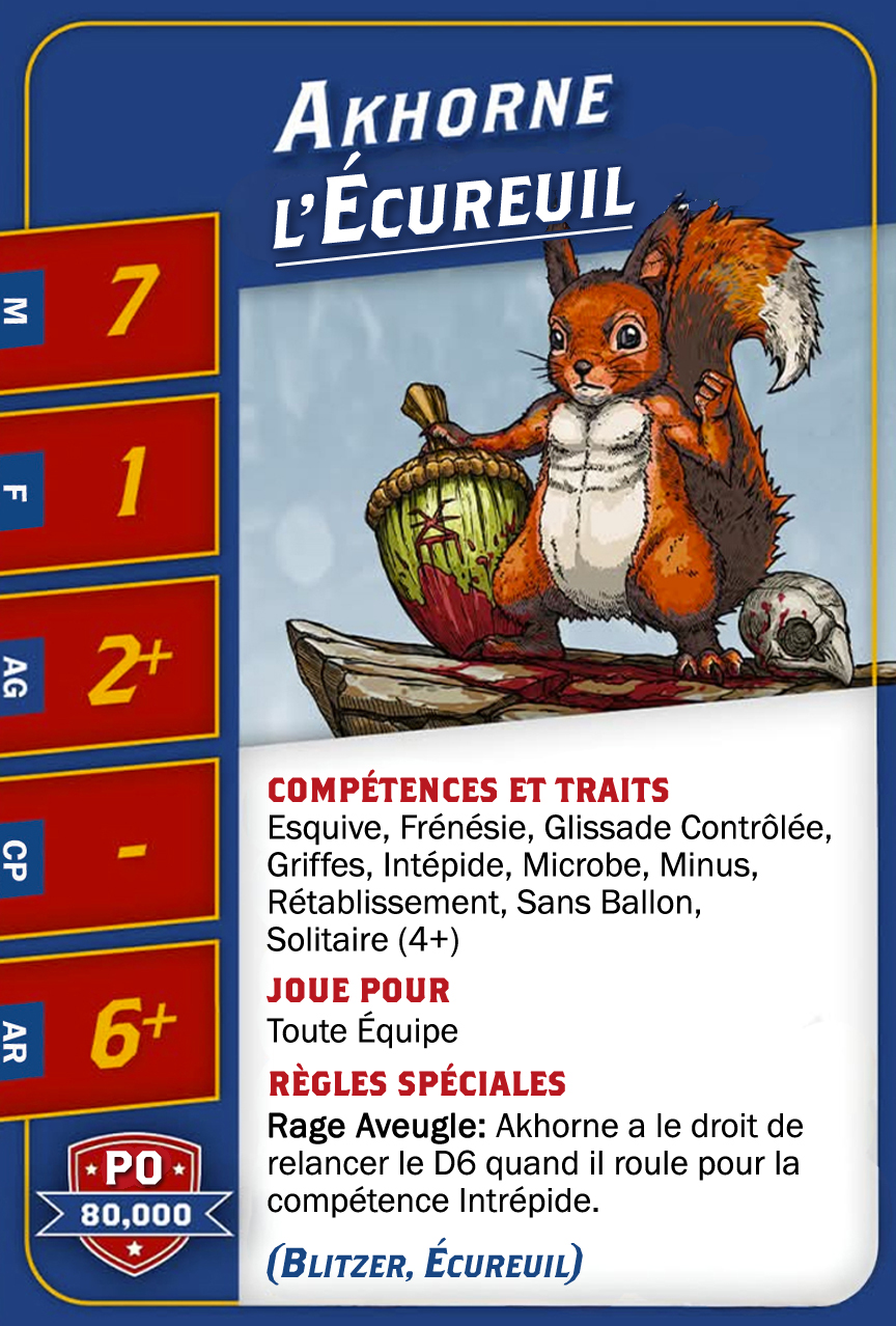 | 0-1 | Trained Troll (Gros Bras, Troll) | 115,000 | 4 | 5 | 5+ | 5+ | 10+ | Châtaigne, Gerbe de Vomi, Gros Débile, Lancer de Coéquipier, Régénération, Toujours Affamé | S | AGP | 9,10,11 |