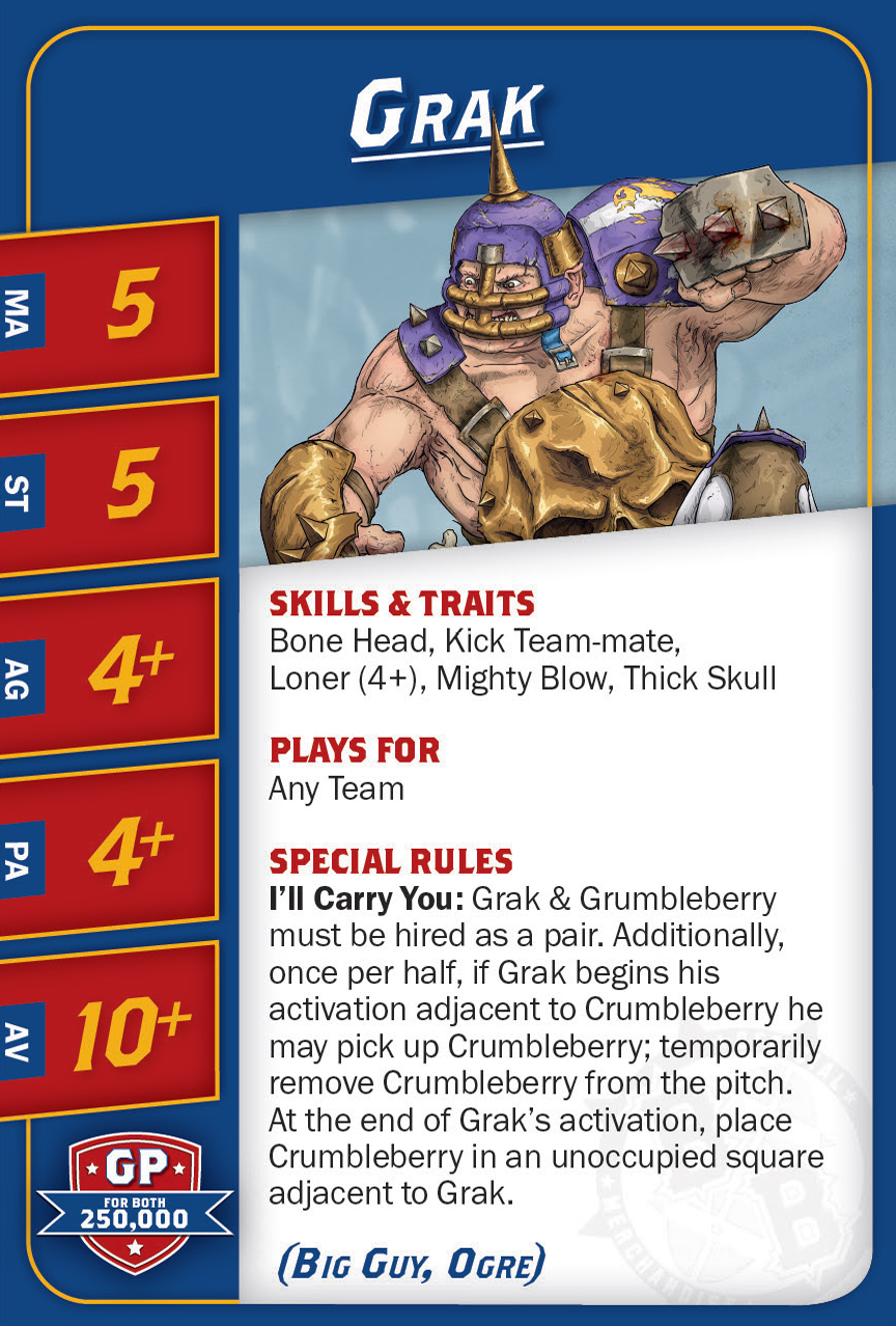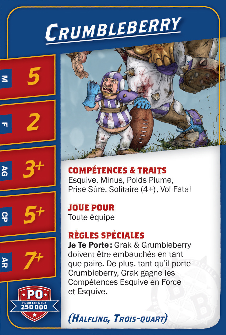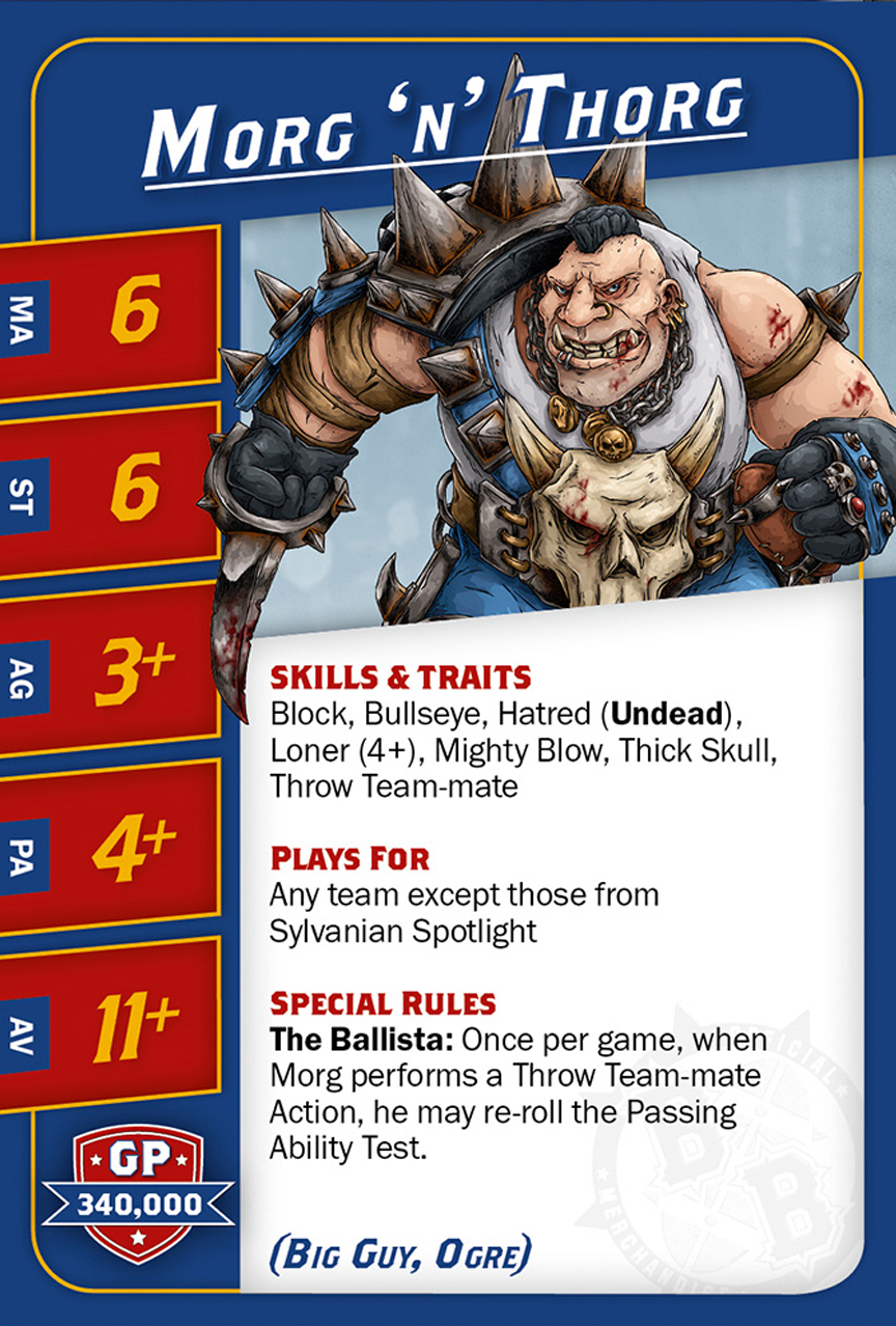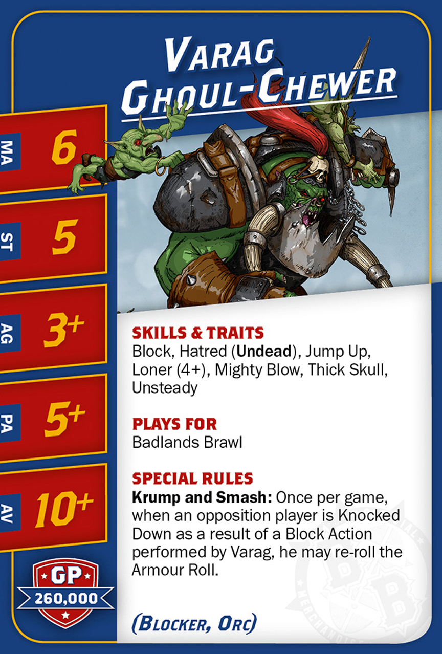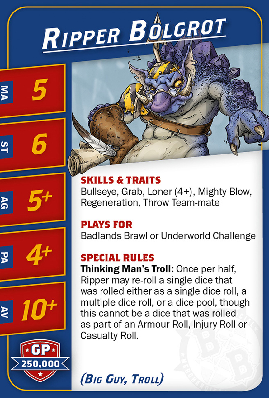 | 0-1 | Trained Troll (Gros Bras, Troll) | 115,000 | 4 | 5 | 5+ | 5+ | 10+ | Châtaigne, Gerbe de Vomi, Gros Débile, Lancer de Coéquipier, Régénération, Toujours Affamé | S | AGP | 10,11 |