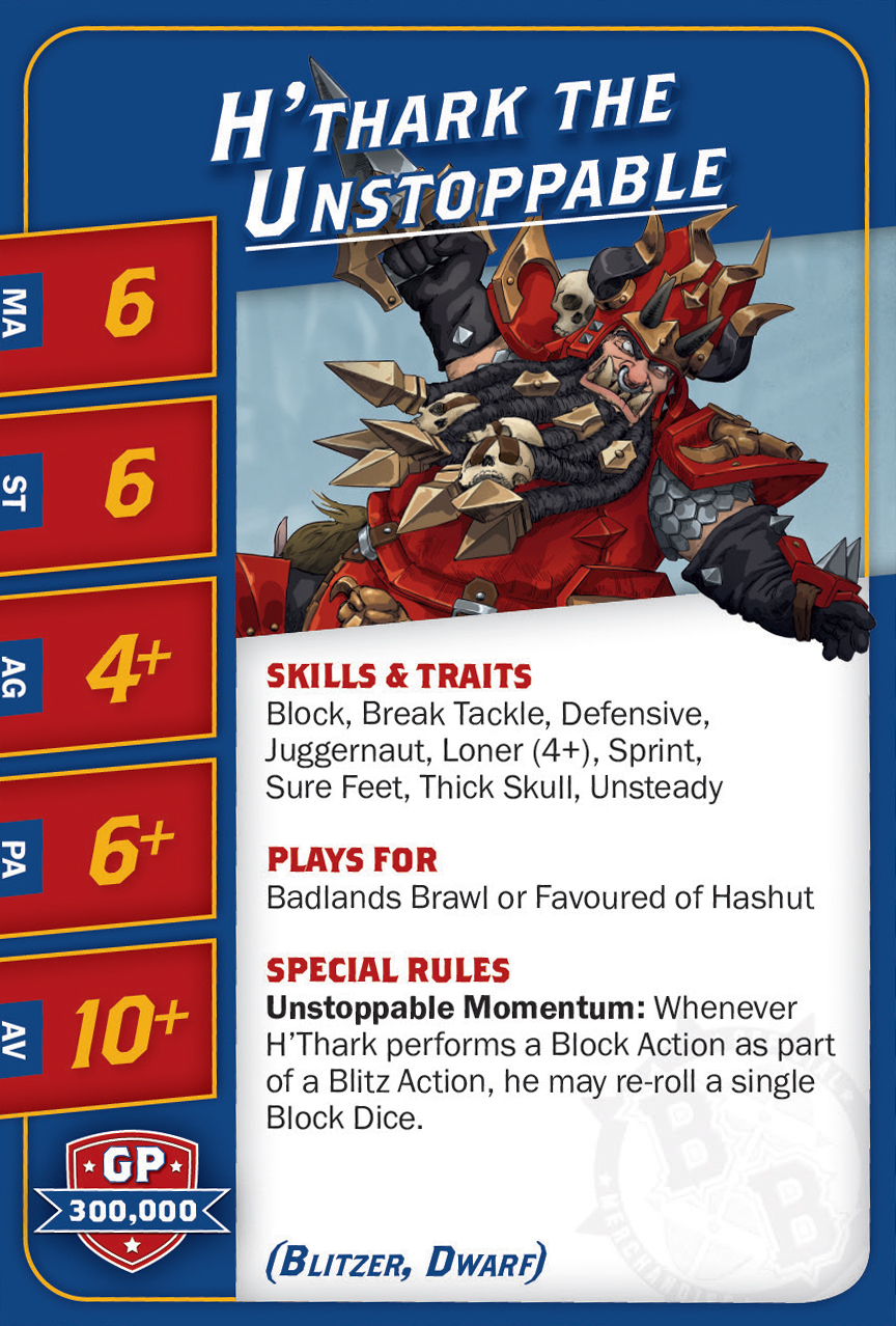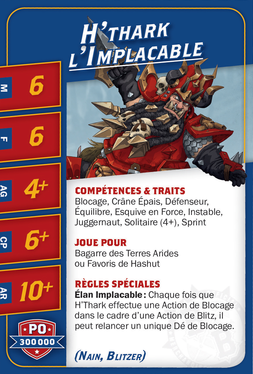 | 0-6 | Black Orc (Bloqueur, Orque) | 90,000 | 4 | 4 | 4+ | 5+ | 10+ | Bagarreur, Projection | GS | AD | 6,7,8,9 |