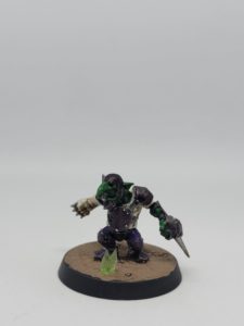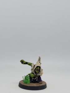 Un spécimen de goblin particulièrement balèze et ce depuis la naissance, le gabarit de Glorp favorisait l’intimidiation et la violence. Il est donc normal qu’il ait choisi un poste de gestion. Les années passées à superviser l’extraction de Warpstones lui ont donné 3e bras, mine horrible et un caractère pire que la combinaison des 2. Parfait pour diriger une équipe de ballon pointu.