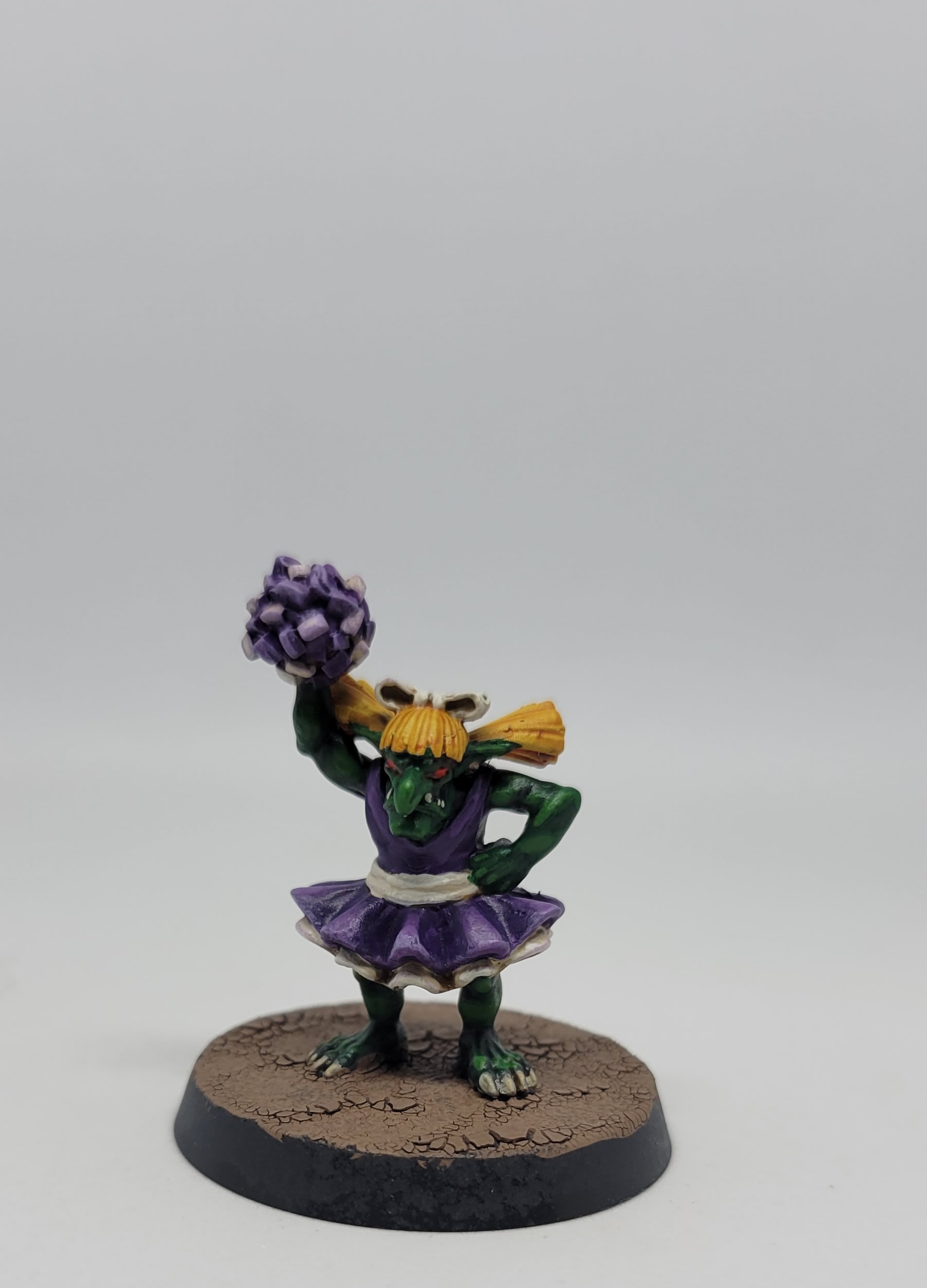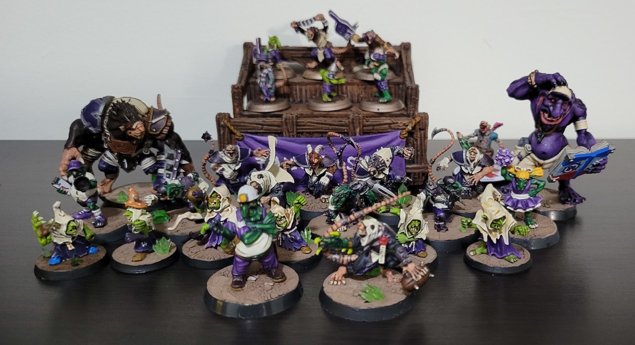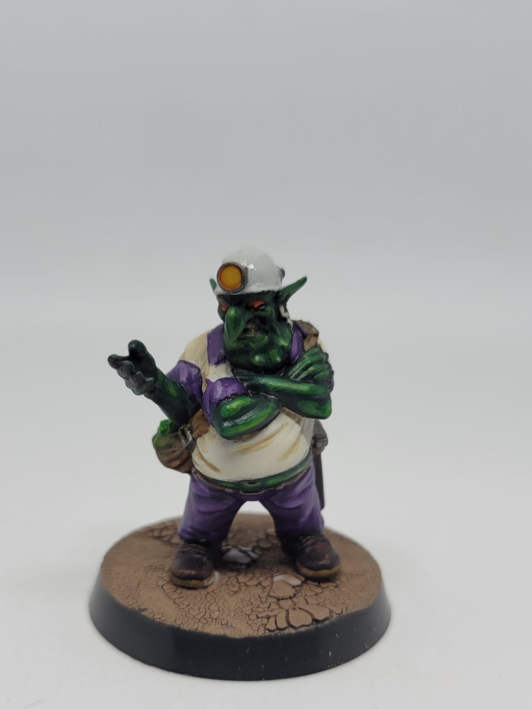 Un spécimen de goblin particulièrement balèze et ce depuis la naissance, le gabarit de Glorp favorisait l’intimidiation et la violence. Il est donc normal qu’il ait choisi un poste de gestion. Les années passées à superviser l’extraction de Warpstones lui ont donné 3e bras, mine horrible et un caractère pire que la combinaison des 2. Parfait pour diriger une équipe de ballon pointu.